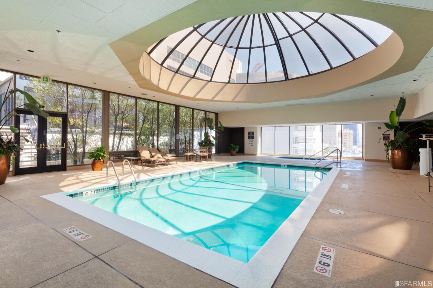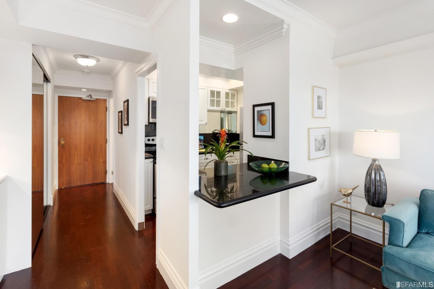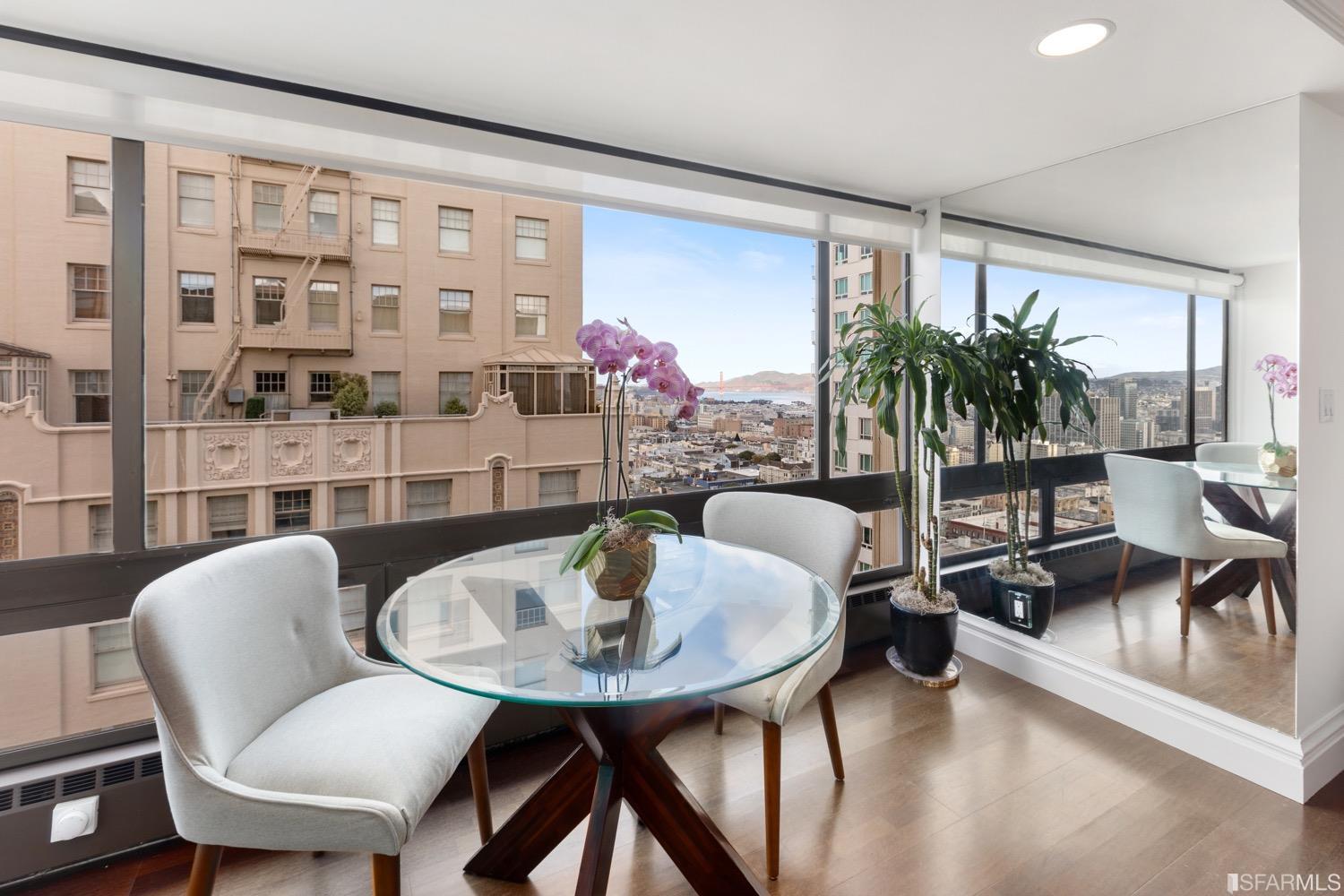 Video Tour! 1177 California, Unit 1602 is an efficient, remodeled, junior one-bedroom with exceptional Twin Peaks, City and Golden Gate Bridge views. Gramercy Towers, located on the top of iconic Nob Hill on the cable car line across the street from Grace Cathedral and Huntington Park, is a premier San Francisco condominium building with 24-hour doormen and amenities that make for secure and effortless living. Amenities include on-site management, doormen, indoor pool, gym, spa and sauna. HOA Fees include heat, electricity, cable TV, internet, earthquake insurance and parking. Laundry is located on each residential level. The Osso Steakhouse is on the lobby level. The Masonic Auditorium is next door. Easy accessibility to transportation, shopping, Union Square and downtown.