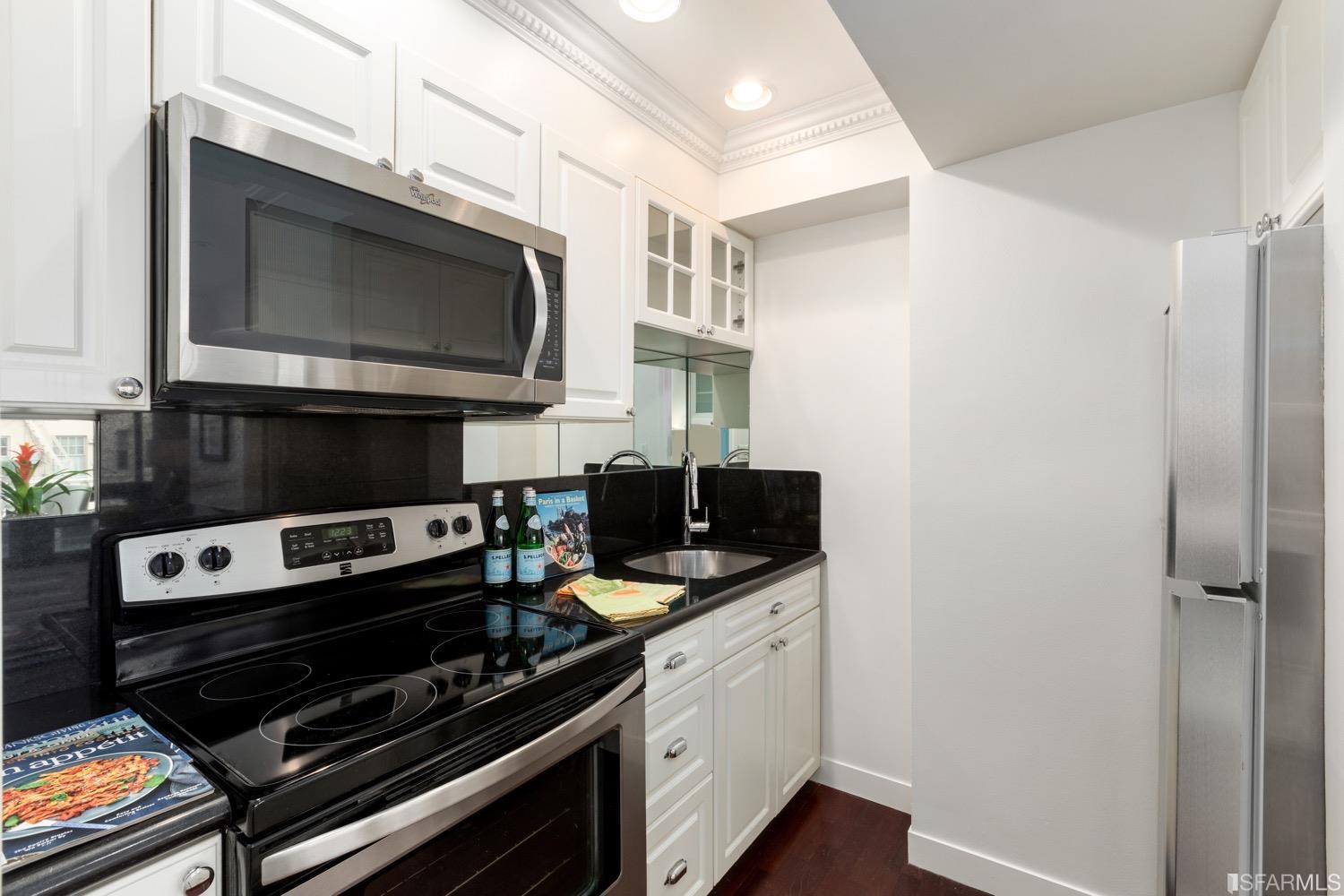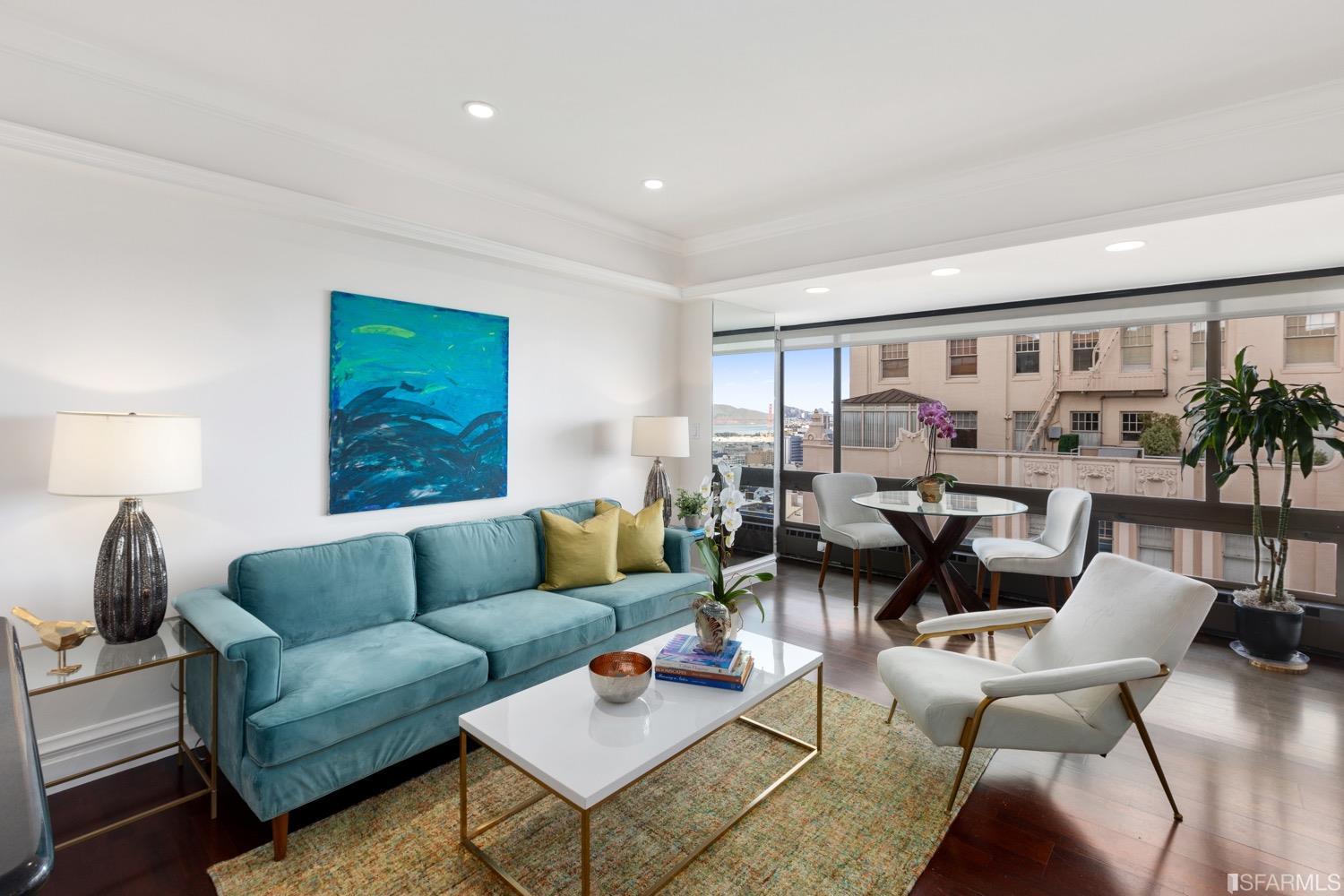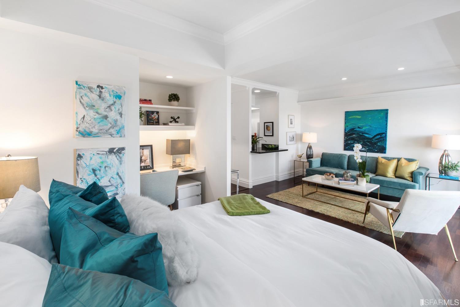 Video Tour! 1177 California, Unit 1602 is an efficient, remodeled, junior one-bedroom with exceptional Twin Peaks, City and Golden Gate Bridge views. Gramercy Towers, located on the top of iconic Nob Hill on the cable car line across the street from Grace Cathedral and Huntington Park, is a premier San Francisco condominium building with 24-hour doormen and amenities that make for secure and effortless living. Amenities include on-site management, doormen, indoor pool, gym, spa and sauna. HOA Fees include heat, electricity, cable TV, internet, earthquake insurance and parking. Laundry is located on each residential level. The Osso Steakhouse is on the lobby level. The Masonic Auditorium is next door. Easy accessibility to transportation, shopping, Union Square and downtown.