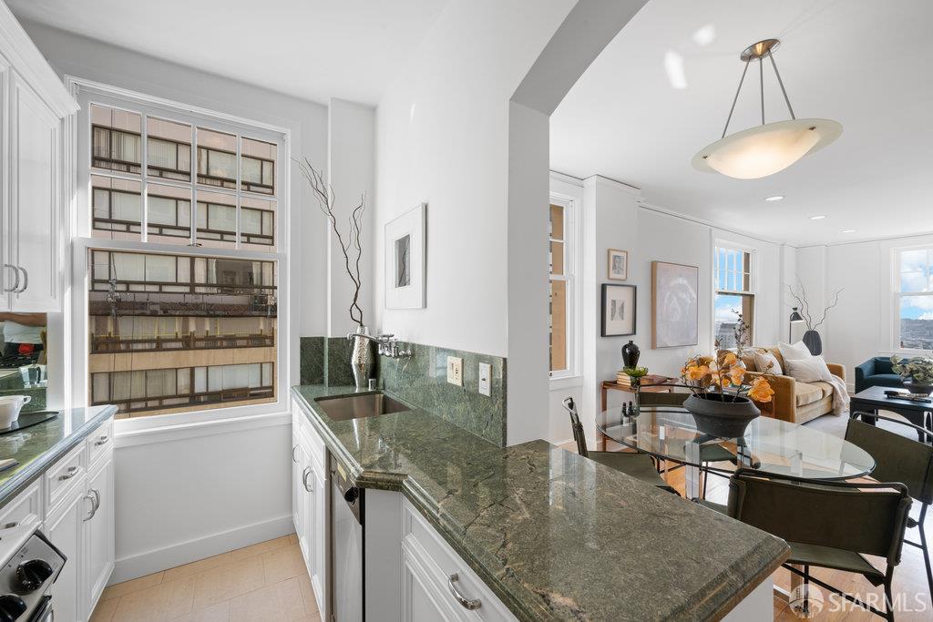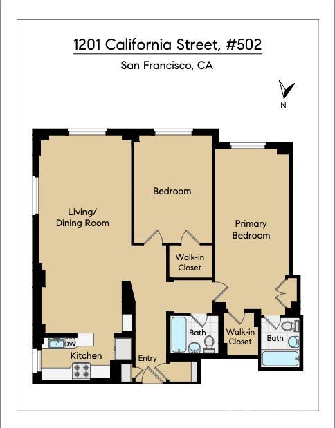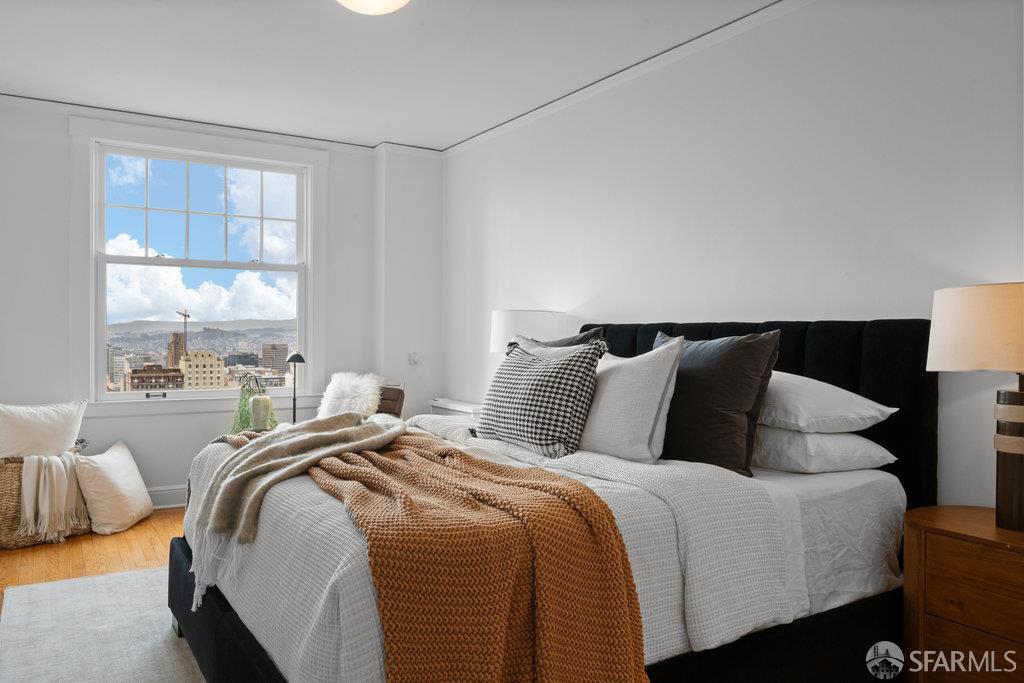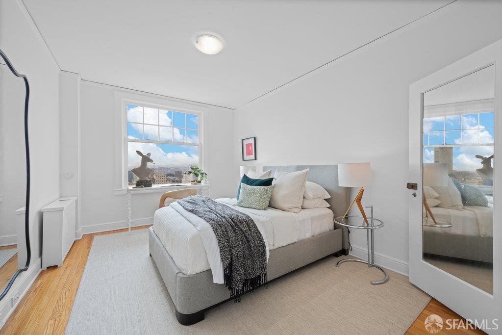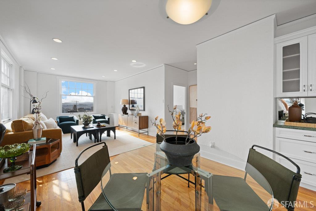 Video Tour Preview! Come see this home by appointment anytime! Built in 1927 on the top of Nob Hill, 1201 California - The Cathedral Apartments has 16 residential floors with a total of 74 homes. The beautiful attended lobby welcomes you. Unit 502 is on the south east corner of the building. Enter onto the hardwood floors that continue throughout. The open living room, dining room and remodeled kitchen are spacious and light The first bedroom with walk-in close and full bath are off the living area. The large primary suite is next door. Both Bedrooms and the Living area enjoy the south light and panoramic view. The building has a beautiful shared garden terrace. Parking for $235 per month completes this San Francisco home.