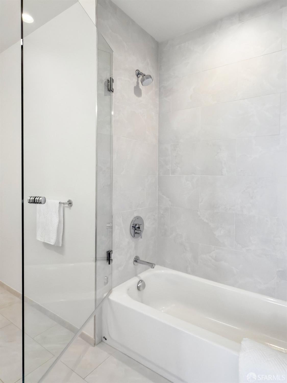 Ideally situated in the heart of Polk Gulch, adjacent to Nob Hill and Pacific Heights, this residence offers an exceptional central location with convenient access to some of San Francisco's best shops, restaurants, cafes, bars, and daily amenities. Multiple grocery stores, schools, and public transportation options are all within close proximity, with easy access to surrounding neighborhoods including the Financial District, Japantown, and Civic Center. Constructed in 2019 with concrete and steel, the building offers a high level of quality and durability, along with secure entry, intercom system, and a dedicated package reception area. Located on the 6th floor with a desirable southeast orientation, this home enjoys abundant natural light throughout the day and city views from every room. The well-designed floor plan offers a true three-bedroom layout, ideal for a variety of living arrangements. The main living areas feature wide-plank hardwood flooring, creating a warm and modern aesthetic. The spacious chef's kitchen is equipped with a high-end stainless steel appliance suite, sleek cabinetry, and a large island with bar seating, ideal for both everyday living and entertaining. The two secondary bedrooms offer comfortable accommodations with ample closet space. The guest bathroom includes a shower over tub. The primary suite enjoys a pleasant southern outlook and features a large walk-in closet, dual vanity, walk-in shower, and a separate water closet for added privacy. Additional highlights include in-unit stacked laundry in a dedicated closet, air conditioning, a rare and valuable feature in San Francisco and one deeded parking space along with additional storage. Residents enjoy access to an expansive, furnished rooftop deck with multiple lounge areas, panoramic city views, and a BBQ and cooking area, perfect for relaxing or entertaining. This is a rare opportunity to own a well-constructed, light-filled 3-bedroom home in one of San Francisco's most central and desirable neighborhoods.