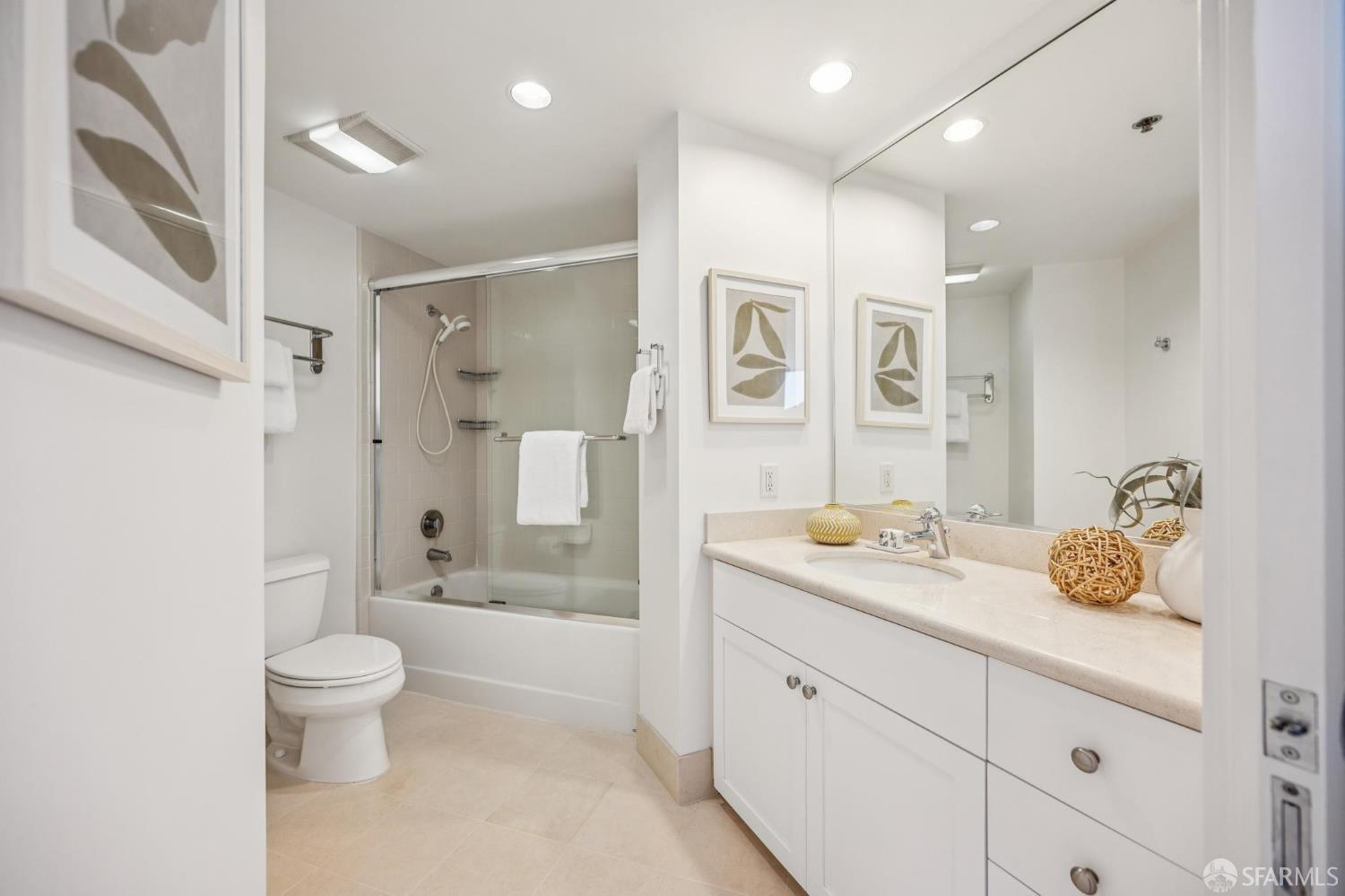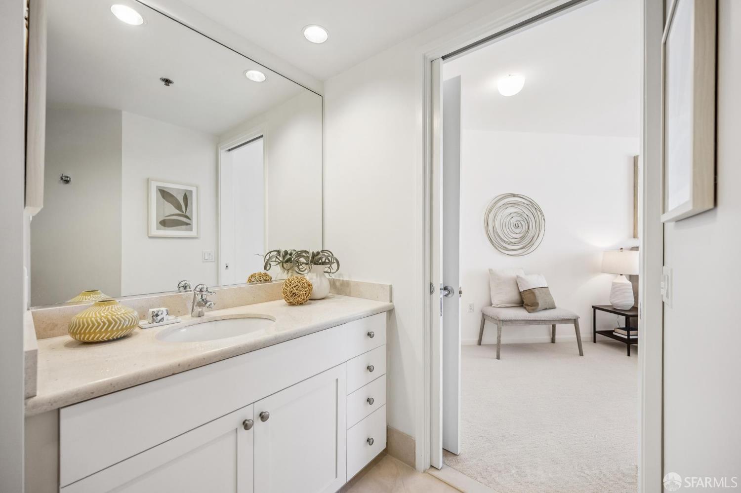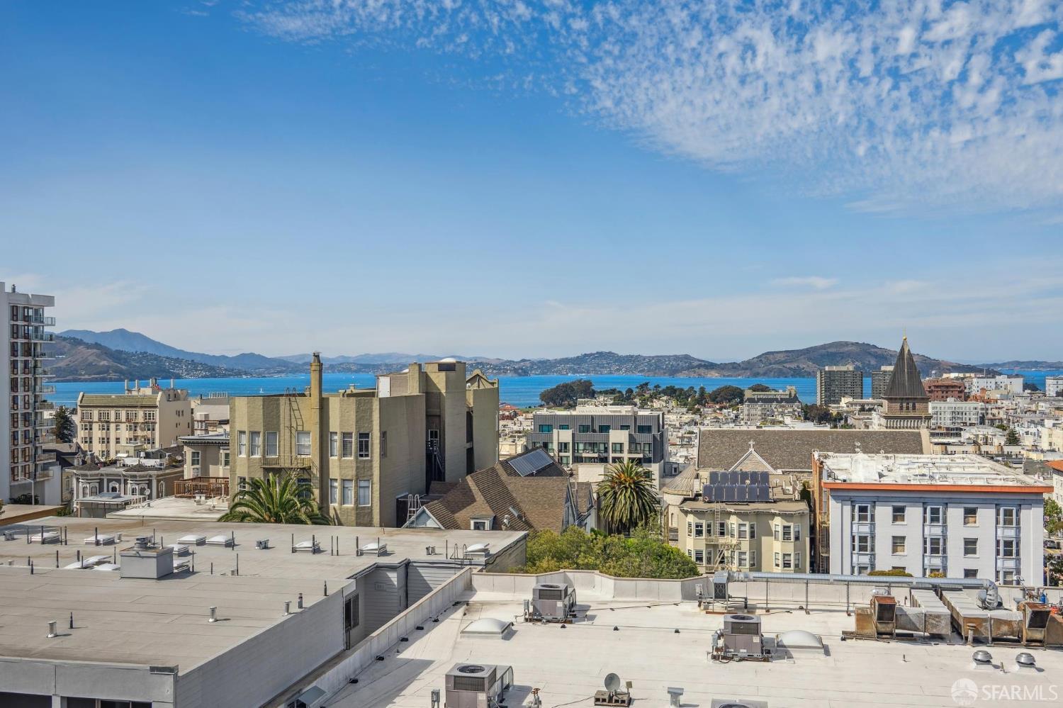 Don't miss this Pacific Heights Bay View offering! Water outlooks are rarely available at coveted Pacific Place. This Top Floor corner home has it all: flooded with natural light, rich wood & luxe stone interior finishes and custom built-ins, open floor plan including a spacious primary bedroom en suite plus walk-in closet. The desirable split-bedroom layout with two full baths is ideal for guests, roommates, or working from home. Additionally a true urban oasis waits for you in the sunny palm courtyard with heated pool & spa just seconds away. This favored building is well-managed, centrally located, and designed for convenience with two elegant lobbies, Security 24/7, on-site property management, Gym, deeded Parking + extra Storage. Experience the thriving neighborhoods of upper Polk, Fillmore and Union Street which offer boutique shops, tons of fine dining, outdoor cafes galore...all you want in vibrant city living within minutes of your front door! 98 Walk/Transit Score 98-100.