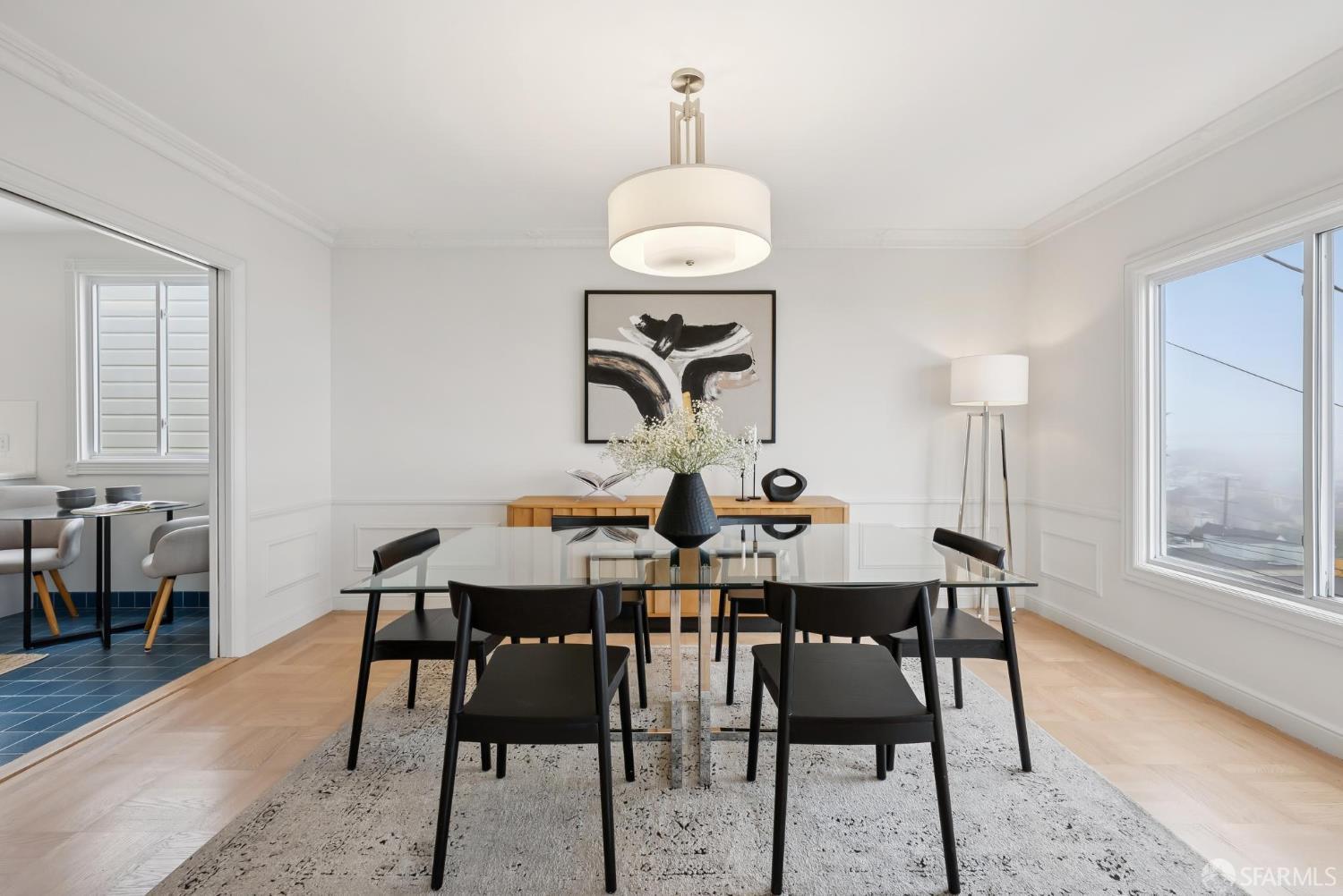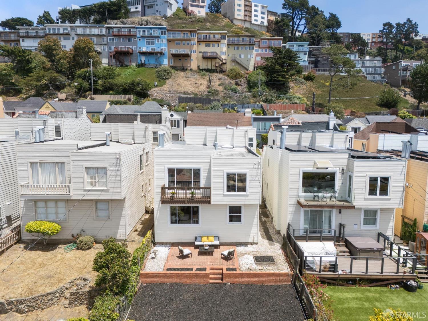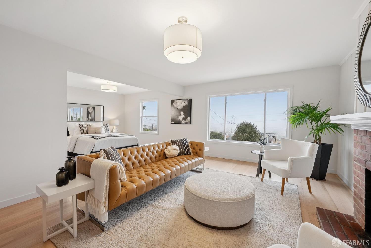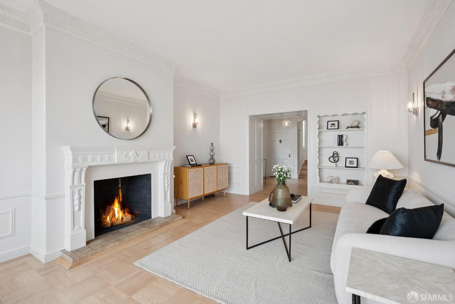 Welcome home to breath-taking ocean views & sunsets in this enchanting 1938 Rousseau-style residence, where vintage charm blends with modern living. Located in highly desirable Golden Gate Heights, this bright and spacious 3BD/2BA, 2,426 +/- square foot split-level home offers unobstructed water vistas and a charming street facing facade with red brick siding. The main level boasts formal living & dining rooms with wood-burning fireplace, tall ceilings, newly refinished parquet hardwood floors, original intricate crown moldings, and a large eat-in kitchen with skylight and Sub-Zero refrigerator-providing a canvas for creating the perfect culinary space. The upper level offers two spacious bedroom retreats, a jacuzzi tub bathroom, and multiple good-sized closets. The lower-level features huge views from a family room with wet bar & fireplace, an additional bedroom & bathroom, along with a kitchenette, utilities, and expansive storage room. Additional highlights: new custom paint & modern lighting throughout, newly refinished hardwood floors, double paned windows, deep terraced garden with brick patio, roomy garage with laundry & ample storage. Walk to iconic 16th Avenue Mosaic stairs & Grandview Park, and just minutes to West Portal and Irving Street shopping and dining corridors!