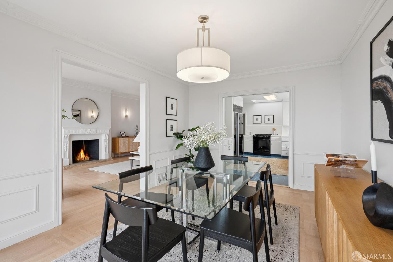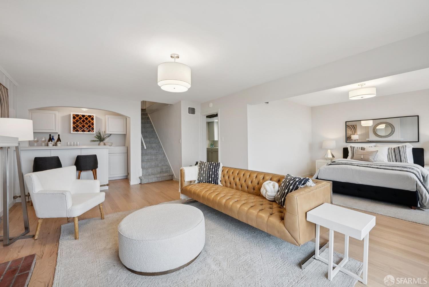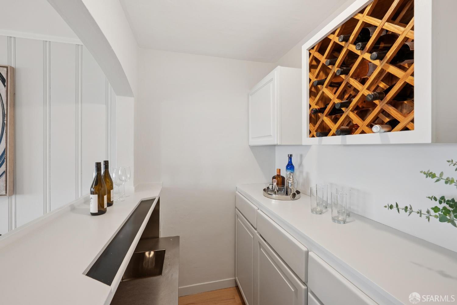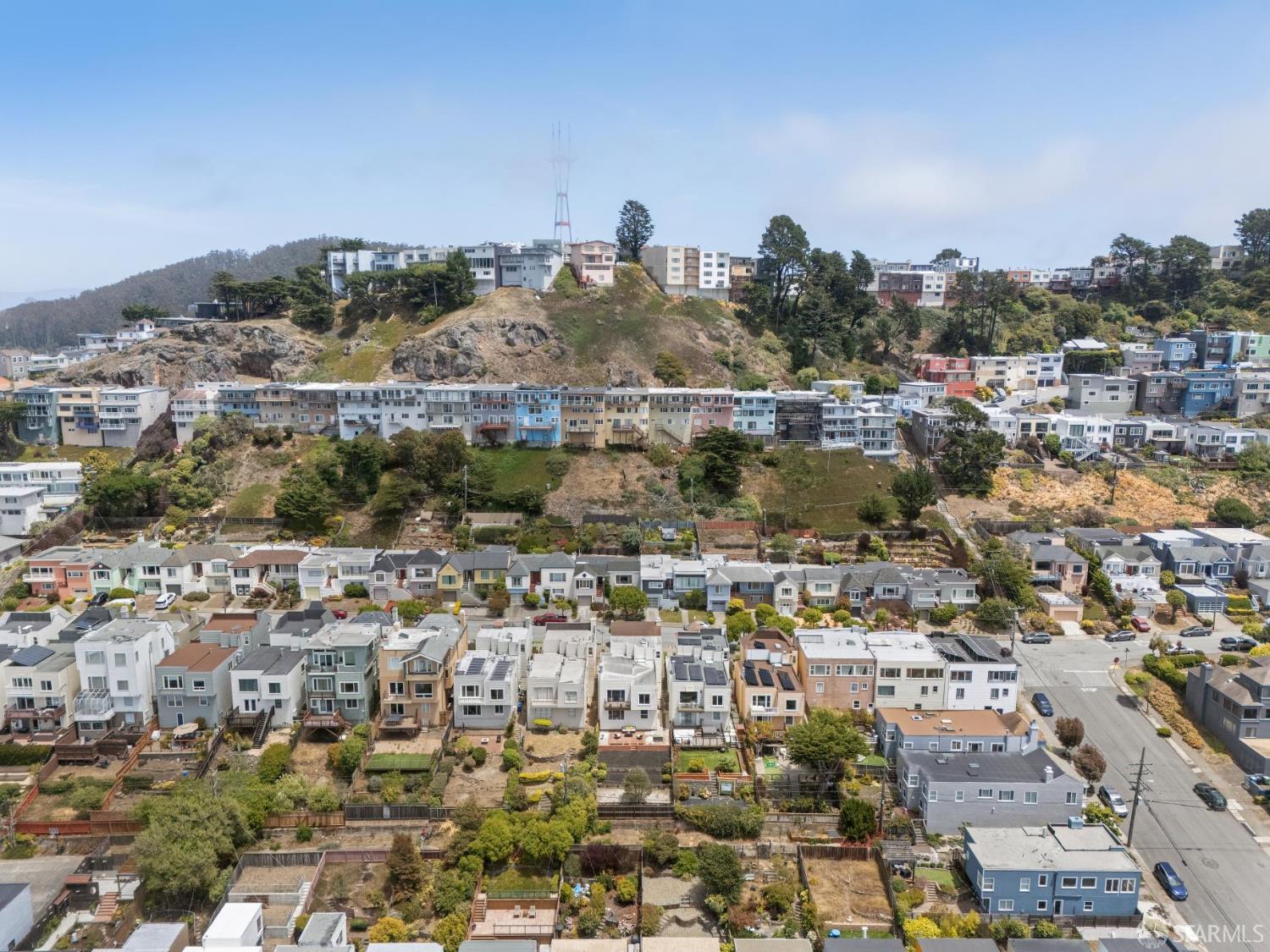Welcome home to breath-taking ocean views & sunsets in this enchanting 1938 Rousseau-style residence, where vintage charm blends with modern living. Located in highly desirable Golden Gate Heights, this bright and spacious 3BD/2BA, 2,426 +/- square foot split-level home offers unobstructed water vistas and a charming street facing facade with red brick siding. The main level boasts formal living & dining rooms with wood-burning fireplace, tall ceilings, newly refinished parquet hardwood floors, original intricate crown moldings, and a large eat-in kitchen with skylight and Sub-Zero refrigerator-providing a canvas for creating the perfect culinary space. The upper level offers two spacious bedroom retreats, a jacuzzi tub bathroom, and multiple good-sized closets. The lower-level features huge views from a family room with wet bar & fireplace, an additional bedroom & bathroom, along with a kitchenette, utilities, and expansive storage room. Additional highlights: new custom paint & modern lighting throughout, newly refinished hardwood floors, double paned windows, deep terraced garden with brick patio, roomy garage with laundry & ample storage. Walk to iconic 16th Avenue Mosaic stairs & Grandview Park, and just minutes to West Portal and Irving Street shopping and dining corridors!