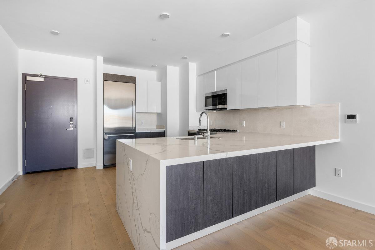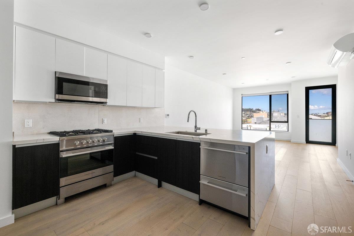 Welcome to 2 Russia Avenue, a top-floor 3 bed, 3 bath townhome built in 2022 with a private roof deck featuring City skyline views. Located in San Francisco's Excelsior District, this multi-level home combines modern design, hardwood floors throughout, and a smart, flexible layout. The main level offers open living/dining, a gourmet kitchen with stainless steel appliances, ample counter space and a full bedroom and bath. Upstairs includes two bedrooms, each with an en suite bath, including a spacious primary suite with walk-in closet. A private deeded roof deck provides outdoor living with sweeping City views. Additional amenities include stacked in-unit washer/dryer, private garage parking, dedicated storage, and low HOA dues. Situated just off Mission Street with easy access to McLaren Park, BART, I-280, and Excelsior's restaurants and shops, this home is a rare opportunity to own newer construction with private outdoor space in one of San Francisco's most vibrant and best-priced neighborhoods.
