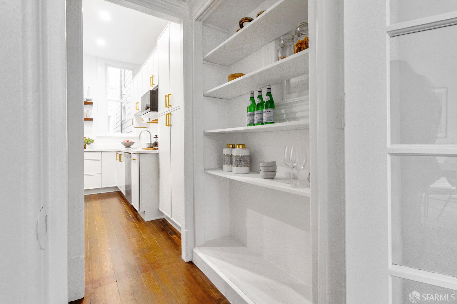 Step into this beautifully maintained 3-bedroom Victorian, classic elegance meets modern style. The inviting living room showcases intricate period details, soaring coved ceilings, & a stunning decorative fireplace, complemented by a working pocket door that creates a warm, welcoming ambiance. Curved windows flood the space with natural light, crisp white interiors & refinished wood floors throughout. A graceful split hallway leads to a serene office or reading retreat perfect for remote work or creative inspiration. The thoughtfully designed split baths combine functionality with charm, honoring the home's Victorian character while providing modern comfort. The updated kitchen is a chef's delight, featuring quartz countertops, stainless steel appliances, & new cabinetry. It flows seamlessly to the spacious dining room, which opens to a garden & private deeded deck ideal for al fresco dining, morning coffee, or relaxing in the afternoon sun. Perfect for everyday living & effortless entertaining. Ample storage includes dedicated laundry space off the kitchen & deeded basement storage. Nestled in the highly desirable NOPA neighborhood, just steps from the Divisadero corridor, cafes, shops, and parks, this Victorian gem offers the best of both worlds, timeless with a fresh feel.